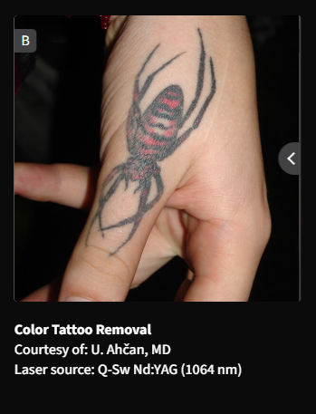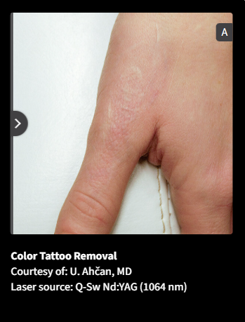 - Tetovaže — uklanja pigment u različitim bojama zahvaljujući kombinaciji valnih duljina